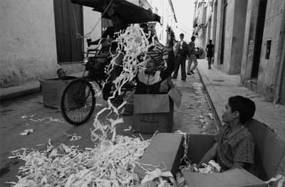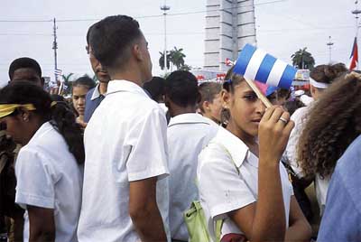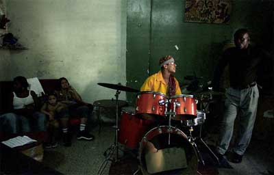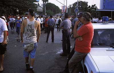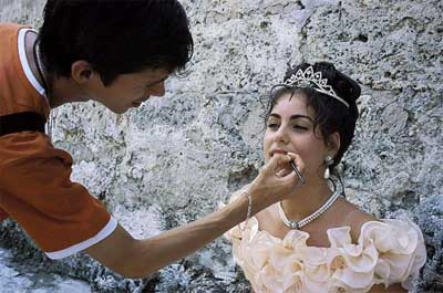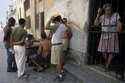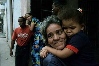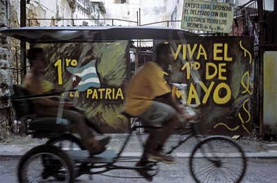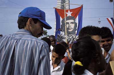 Un mural celebra la Festa del Primo Maggio. Piccola "habanera". Un percussionista di salsa prende una pausa durante le prove del suo gruppo. Cercando il giusto sound. "Questo è il passaggio di cui stavo parlando". Percussionista di una gruppo di salsa. Uno sposalizio alla " Casa de los Matrimonios". Aspettando l'arrivo della sposa. "Casa de los matrimonios". Testimoni di uno sposalizio alla "Casa de los Matrimonios". Claudia Díaz Oliva, 15 anni, si prepara per le foto della sua Festa di debutto dei 15 anni. Una turista sorpresa da una ondata sul Malecon. Bambini giocano in Calle Obrapía. Truccarsi sulla porta di casa. Giocando a domino in Centro Habana. Luiza e sua figlia. Folla raccolta in Plaza José Martí per il discorso del Primo Maggio di Fidel Castro. Una scolara aspetta il discorso di Castro. "Caco sui vostri dollari", dice la scritta sulla maglietta.