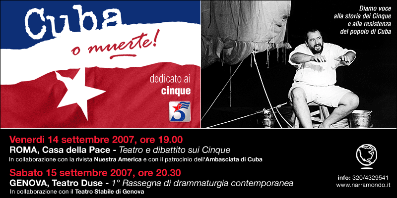 Anche per la versione teatrale, curata da Nicola Pannelli, direttore artistico di Narramondo, il linguaggio narrativo ci è sembrato quello più adatto. La testimonianza utilizza la metafora della lotta del vecchio di Hemingway, solo in mezzo al mare contro i pescecani, per presentarci il punto di vista di un popolo che resiste e che continua, nonostante tutto, a costituire un modello, unico al mondo, di rifiuto della sudditanza agli U.S.A. e di progresso in molti campi.