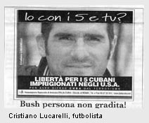 — El 1ro. de abril de 2007. En esa oportunidad salió una foto donde aparecen ocho personas. Cuatro son italianos y los otros cubanos residentes en Italia. Encima de la foto se lee: Noi con i 5 e tu? (nosotros estamos con los 5, ¿y tú?). Debajo solicitamos su libertad y explicamos que ellos están presos en Estados Unidos por haber defendido a Cuba del terrorismo. Luego aparecían el teléfono y la dirección del sitio web de nuestro círculo.