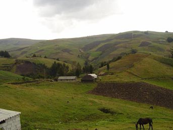 Gracias a la generosidad del proyecto Futuro-Mira y de dirigentes indígenas del Pilahuín, estoy hoy aquí viajando a través de hermosos parajes. Hemos recorrido más de 150 kilómetros desde que salimos de Quito. Quedamos inmensamente impresionados ante aquel maravilloso paisaje, donde crecen, a pesar de la tala, árboles y arbustos de romerillo, mortiño, chuquiraguas y otras especies originarias de los Andes. El conjunto — hombre y naturaleza — nos causa un efecto pintoresco.