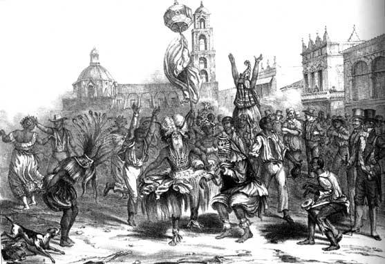 La schiavitù che separava i figli dai padri e distruggeva qualsiasi altro legame familiare, attenuava in quel giorno il suo tirannico potere; tutti i negri scendevano per strada, riunendosi secondo la nazione di appartenenza, per dare libero sfogo alle loro ataviche cerimonie.