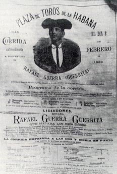 Quitrines y volantes se dirigen hacia la plaza de toros y se detienen en la calle Belascoaín, en el terreno que hoy ocupa el Hospital Hermanos Ameijeiras de la capital cubana. Los carteles que anuncian la corrida de aquella tarde de 1866 informan que se lidiarán seis toros a muerte.