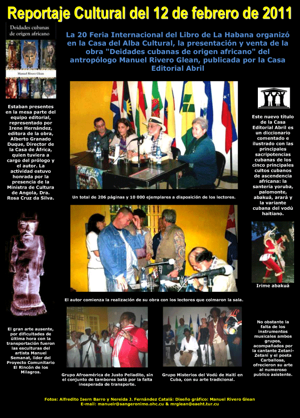 Presentación de la obra "Deidades cubanas de origen africano" en la 20 Feria Internacional del Libro de La Habana FILE PDF 172 KB