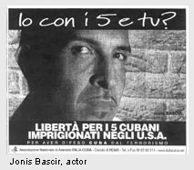 Otro de los comprometidos es el actor Jonis Bascir, uno de los protagonistas de la teleserie Un médico en familia, la cual se difunde por RAI 1 y tiene gran teleaudiencia. Jonis ha mostrado interés por el caso; tanto que me invitó a uno de los programas de Radio Ciudad Futura, emisora que se escucha en Roma y donde también trabaja. Allí me entrevistó y pude explicar quiénes son y por qué están presos René González, Ramón Labañino, Antonio Guerrero, Gerardo Hernández y Fernando González.