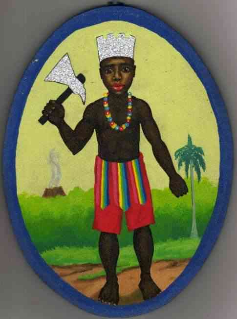 Pieza artística religiosa alegórica a Aggayú Solá Autor anónimo. Pintura sobre madera. Forma ovalada. Tamaño aproximado: 23x16,7 cm Colección Nobili/Saviola, Roma, Italia