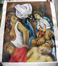 "Todo empezó hace dos años. José Pérez Moya, especializado en la cerámica, me asiste en este proyecto, que no tiene antecedentes en el mundo artístico, porque a partir de pigmentos de cemento se logran esas piezas. Es un trabajo normal, de un artista, recurro a las espátulas, los pinceles, los trapos y hasta los dedos, pues el cemento es un material dúctil, y he sentido un gusto especial al hacerlo, incluso superior al que experimento con el lienzo".