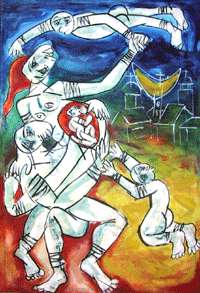 Fascinado siempre por la policromía del trópico así lo plasma en su obra, pero hay también una manera de jugar con el blanco, que está clamando por la ruptura de los límites expresionismo o figuración ¡ en torno a la figura humana.