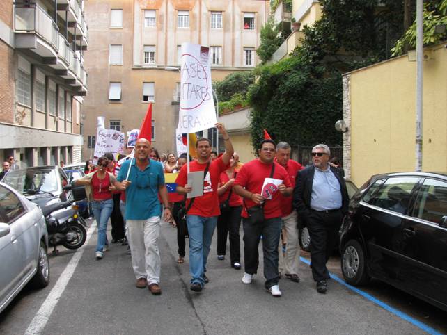 Il 4 settembre 2009 alle ore 12.00, promosso dal Gruppo Giovanile di Studenti a Roma e il Comitato di Donne Latinoamericane di Roma solidali con la Rivoluzione Bolivariana del Venezuela, e con la partecipazione della Rete dei Comunisti, del Partito di Rifondazione Comunista, del Partito dei Comunisti Italiani e di varie associazioni italiane di solidarietà con la Rivoluzione Socialista Bolivariana, si è tenuta una manifestazione sit-in di fronte alla sede dell'Ambasciata della Repubblica Bolivariana del Venezuela Roma, Via Nicolò Tartaglia 11), in appoggio al Governo del Presidente del Venezuela, Hugo Rafael Chávez Frías e in rifiuto alle pretese statunitensi d'installare sette basi militari in suolo colombiano.